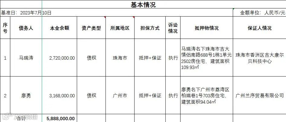 广州广永投资管理有限公司拟公开征集马瑞涛等2户不良债权资产的意向客户,项目基本信息如下: