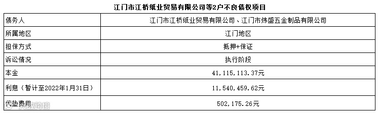 广州广永投资管理有限公司拟公开征集江门市江桥纸业贸易有限公司等2户不良债权项目,项目具体情况如下: