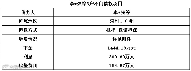 广州广永投资管理有限公司拟公开征集李*强等3户不良债权项目的意向客户,项目具体情况如下: