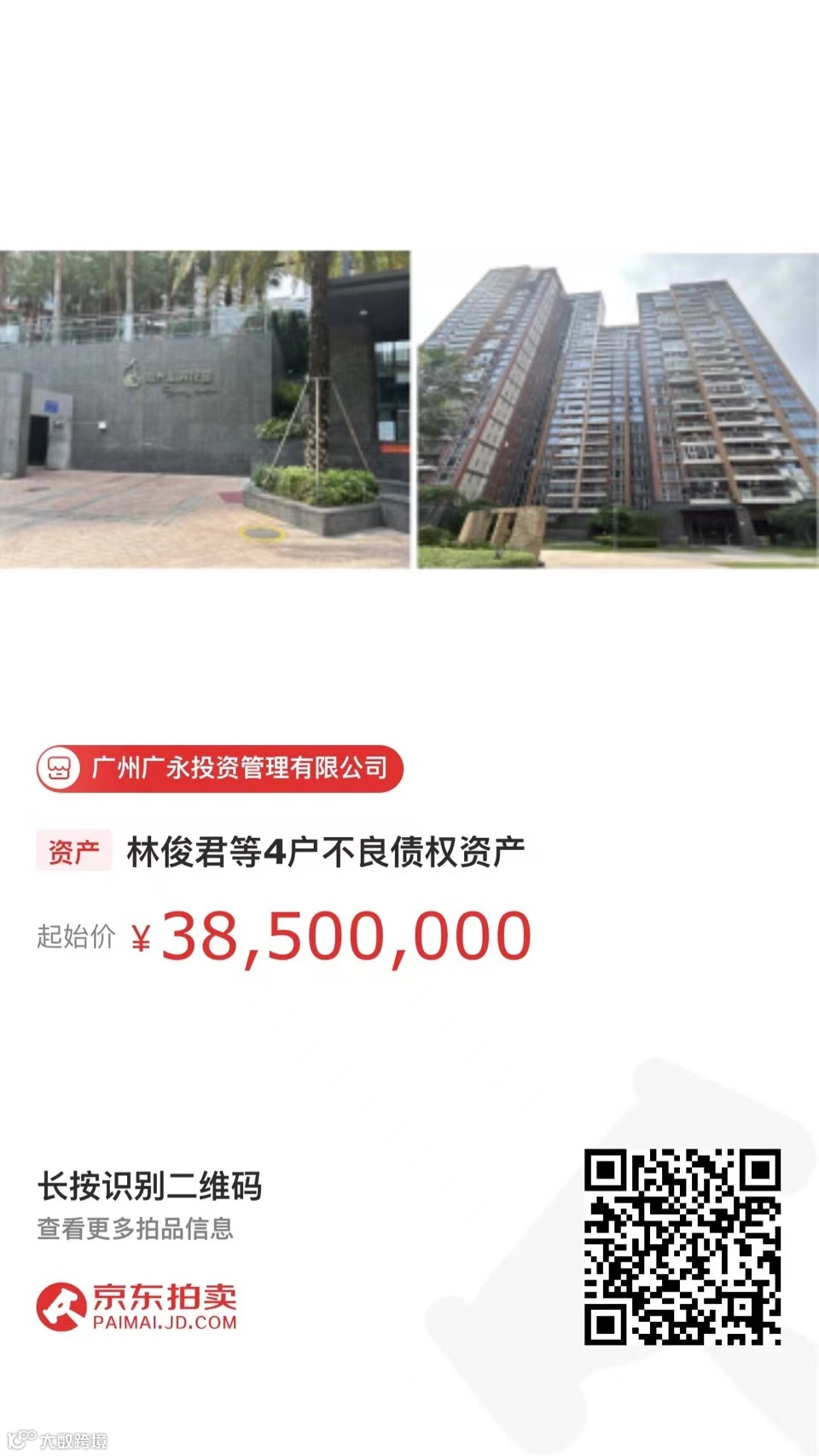 广州广永投资管理有限公司将于2024年5月23日10时至2024年5月23日16时止(延时的除外)在京东网资产竞价网络平台上对林俊君等4户不良债权资产开展公开竞价活动,现公告如下: