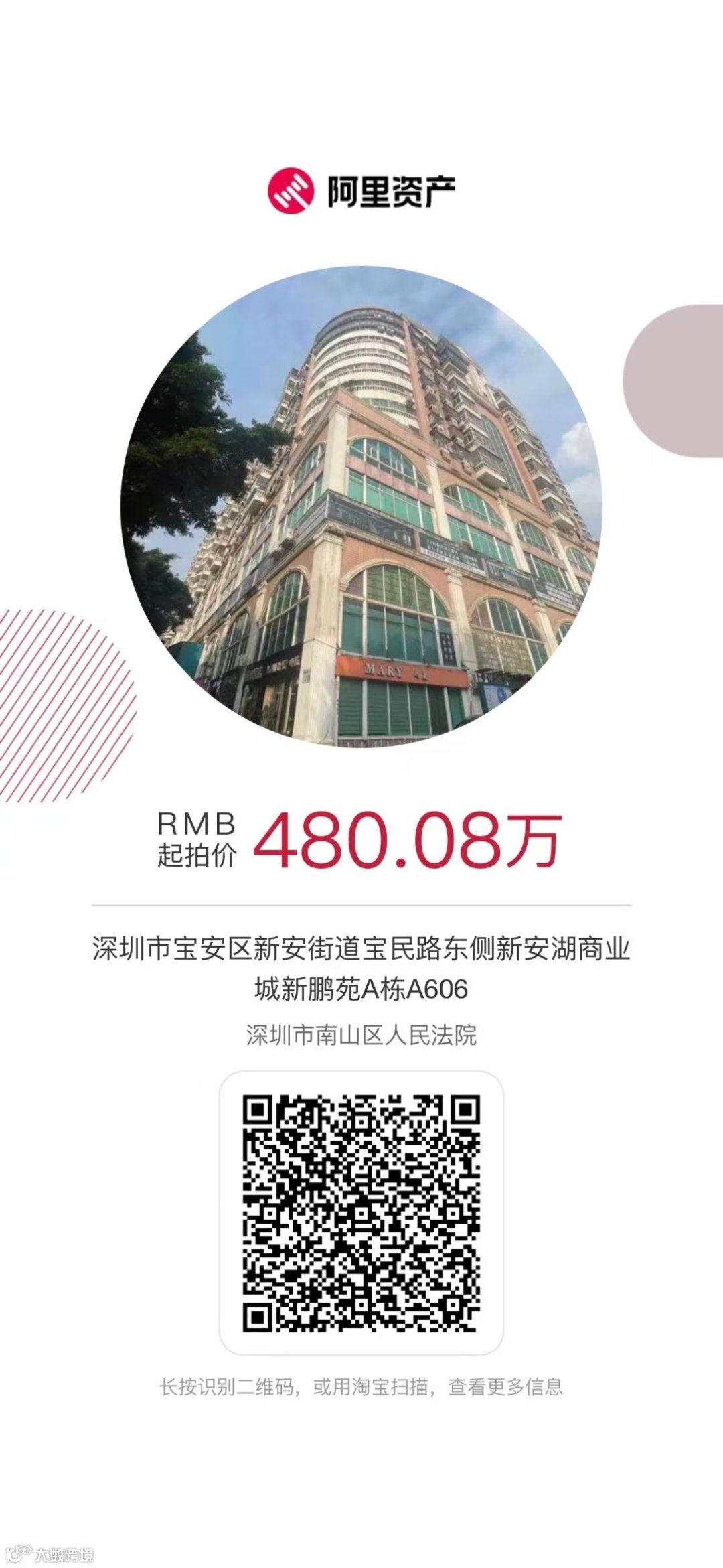 位于深圳市宝安区新安街道宝民路东侧新安湖商业城新鹏苑A栋A606,建筑面积合计137.51㎡。该物业位于宝民一路东,紧邻海雅缤纷城,生活便利,周边有深圳市新安中学(集团)初中部、宝安中学外国语学校(集团)、深圳市宝安区人民医院,配套设施齐全。