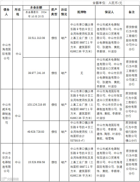 一、拟处置债权:中山市海湾国际有限公司等4户不良债权资产包,具体详见下表: