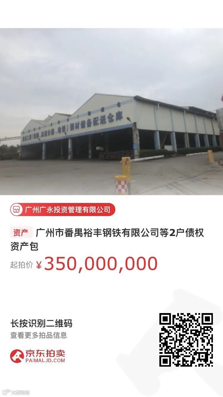 广州广永投资管理有限公司将于2021年7月27日10时至2021年7月27日16时止(延时的除外)在京东网资产竞价网络平台上对持有的广州市番禺裕丰钢铁有限公司等2户债权资产包进行公开挂牌转让,转让基准日2021年6月30日。