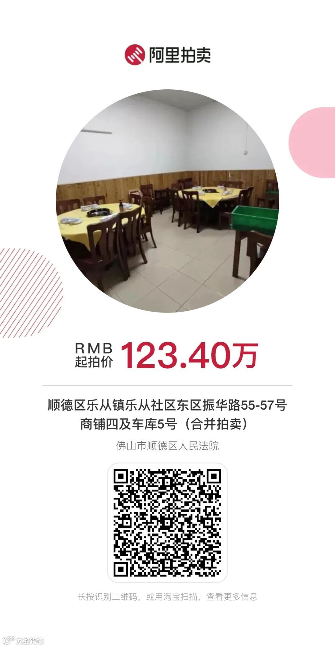 一、拍卖标的:佛山市顺德区乐从镇乐从社区东区振华路55-57号商铺四及车库5号