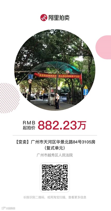 广州市越秀区人民法院将于2020年02月10日上午10时至2020年04月10日上午10时期间(竞价周期与延时除外)在广州市越秀区人民法院阿里巴巴司法拍卖网络平台上进行公开变卖活动(法院账户名:广州市越秀区人民法院,法院主页网址:http://sf.taobao.com/020/05),现公告如下: