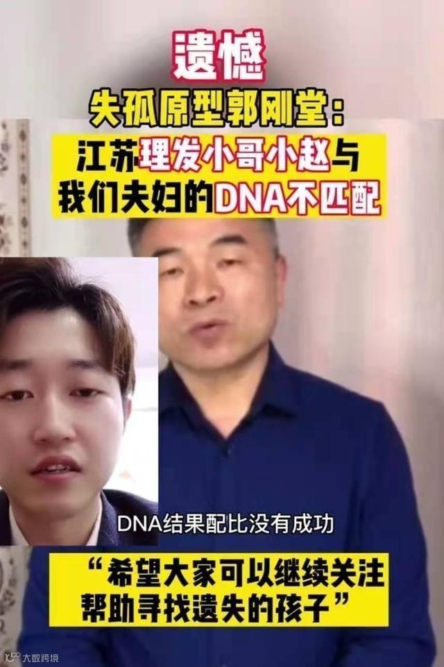 3月份,江苏苏州一位理发小哥赵某在社交平台发布消息称,自己小时候的照片跟电影《失孤》原型男孩“郭振”高度相似。不仅如此,他们还有相同的体貌特征,但自己身份证上的年龄与“郭振”有出入。3月5日下午,《失孤》原型父亲郭刚堂在直播中回应此事称,已与当事人取得联系,当事人称自己为抱养,也同意去做DNA检测。