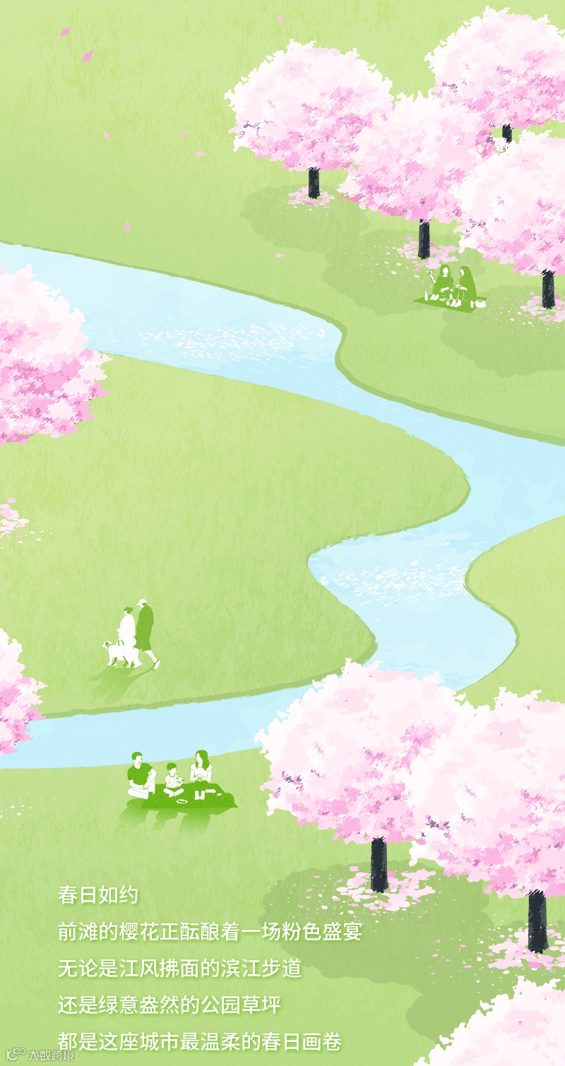 限定版粉色前滩!赏樱目的地+滨江休闲配套全攻略