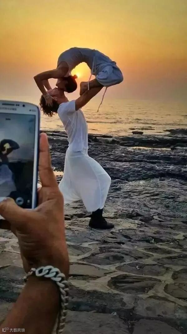 做出杂技中经典的托举动作,