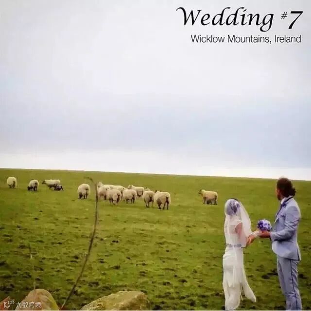 羊群成为了他们婚礼背景的点缀