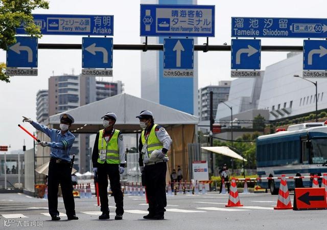 ▲2021年7月13日,日本东京,警察和安保人员在运动员村门口站岗。图片来源:路透社