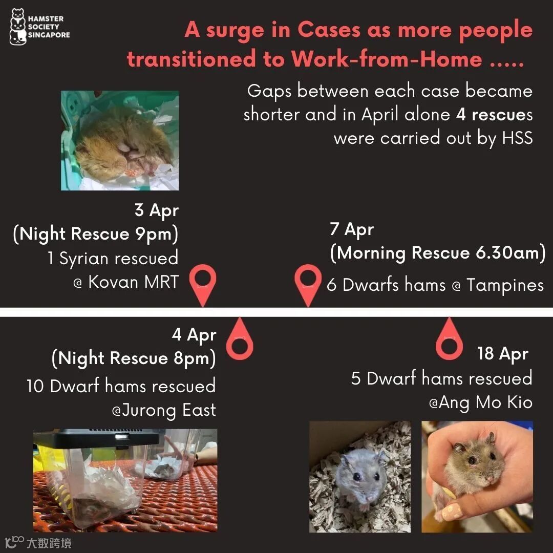 2021年4月4日,共有10只矮仓鼠被丢弃在裕廊东。两周后,4月18日,又有五只矮仓鼠在昂茂桥获救。