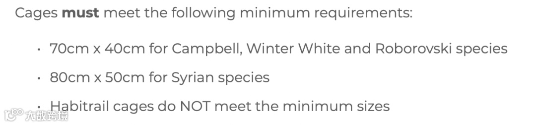 ▲对于不同类型的仓鼠,也有推荐的笼子尺寸。