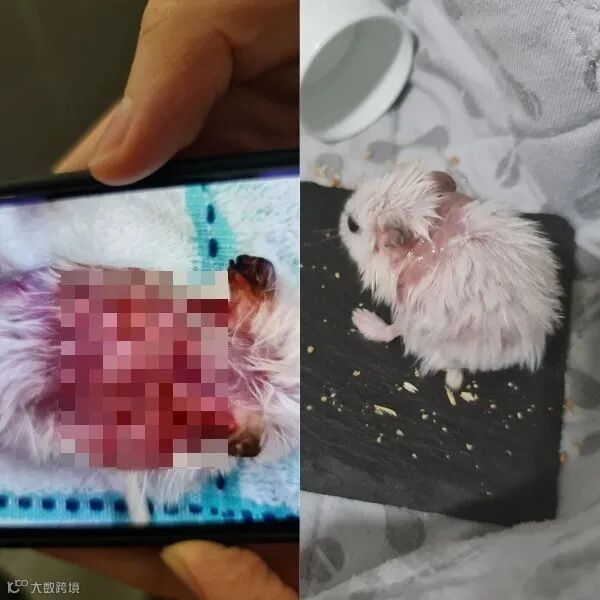 ▲HSS表示,左边的仓鼠身上有伤口,疼得直叫;幸运的是,右边的仓鼠在多次去看兽医后,皮毛又长了回来。