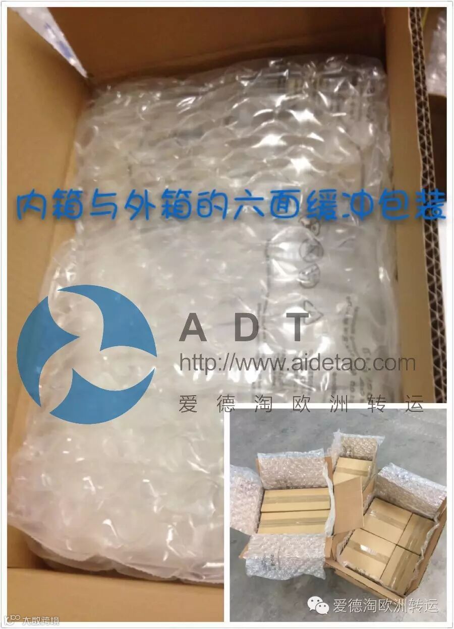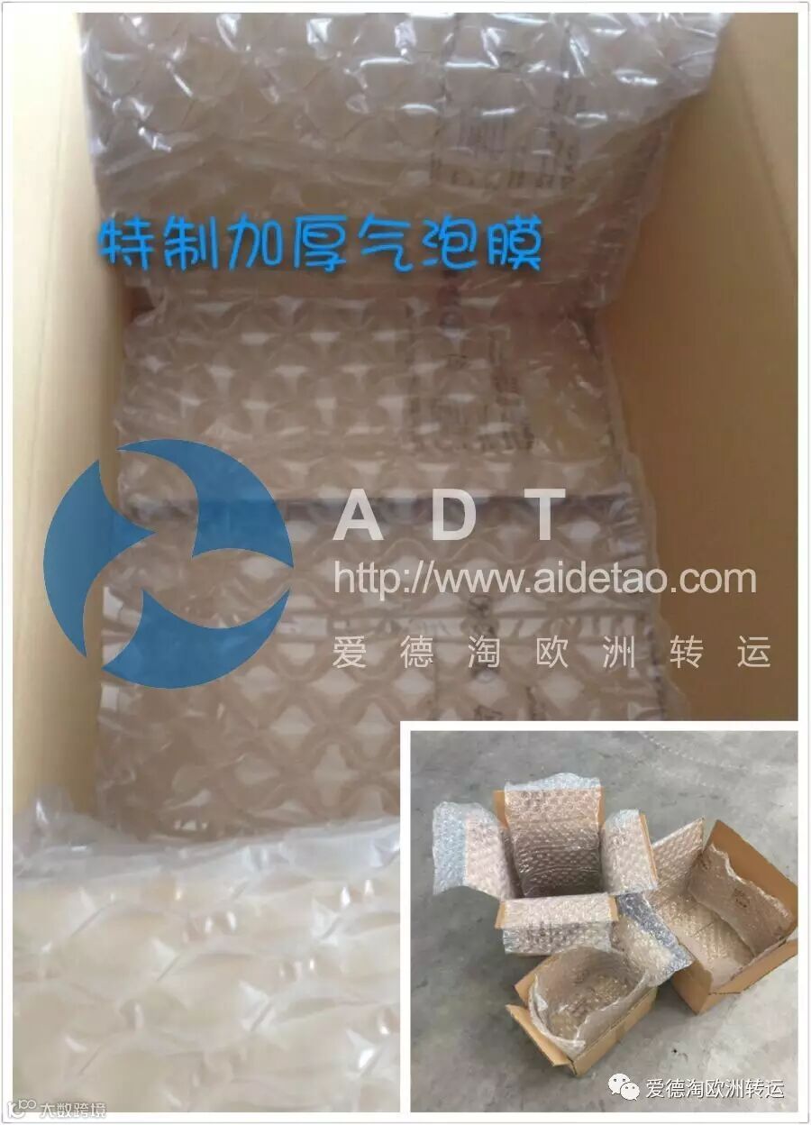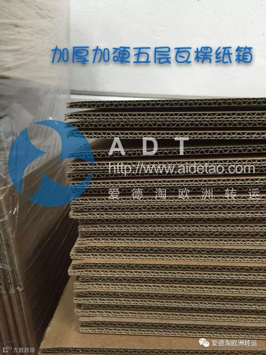 爱德淘为德国唯一使用特制专业加厚气泡膜包装的转运公司,全部采用内箱+外箱+气泡膜+防水膜的打包方式。外箱为加厚加硬的五层瓦楞纸箱。