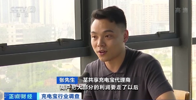 某共享充电宝代理商 张先生:商户把大部分的利润要走了以后,我们肯定会选择性调高一点价格 ,商家有些会要求调价,实际用户得到了价格就是由商家和我们代理商共同来决定这个东西的。如果假如说还有竞争者的话,我可能还考虑的第二个原因 ,就是它的价格是多少 。