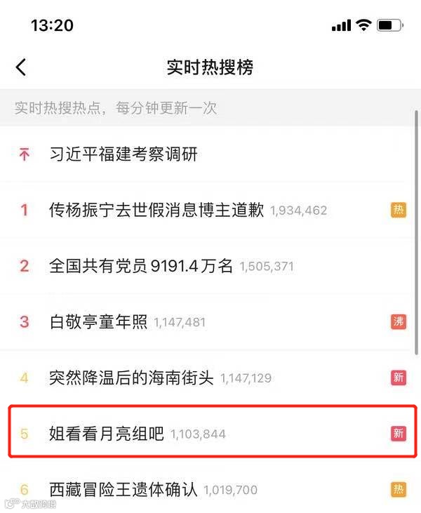 甚至于#姐看看月亮组吧#直接冲上了热搜。