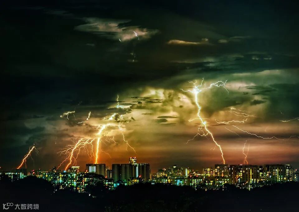 去年的四月份雷阵雨中在新加坡拍摄到壮观的闪电