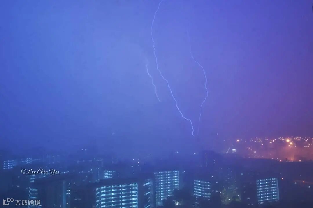 在雷暴天气中,整个新加坡捕获了惊人的闪电