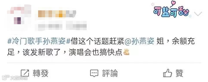 粉丝也借着这个话题催孙燕姿赶紧发新歌开演唱会。