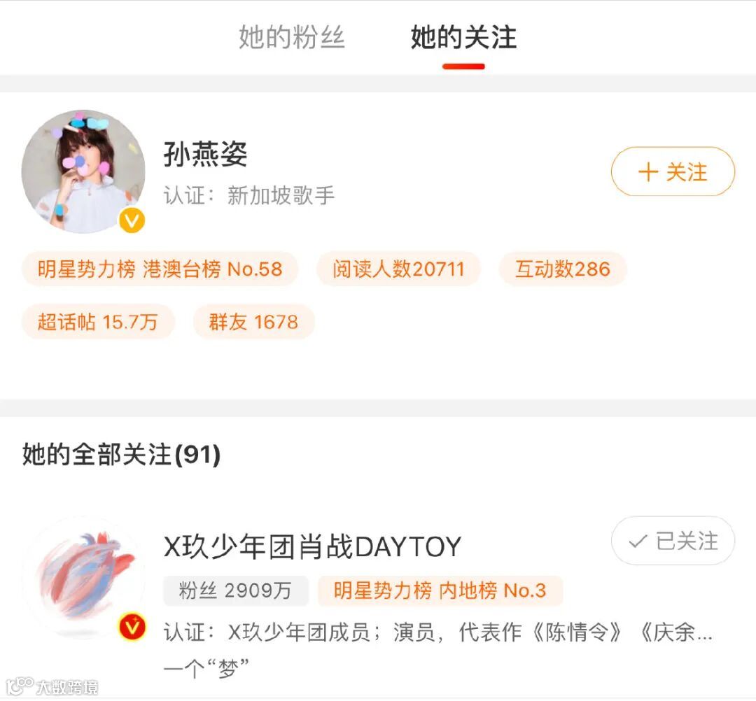 后续孙燕姿还回关了肖战,网友表示恭喜肖战追星成功。
