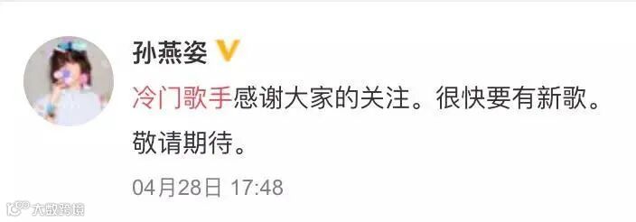 而孙燕姿本人也低调地发了条微博: