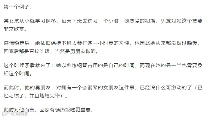 从上面的例子可以看出,此时“弹钢琴”这项技能对他来说已经没有什么价值了,甚至是让他觉得“侵犯”了他的利益。