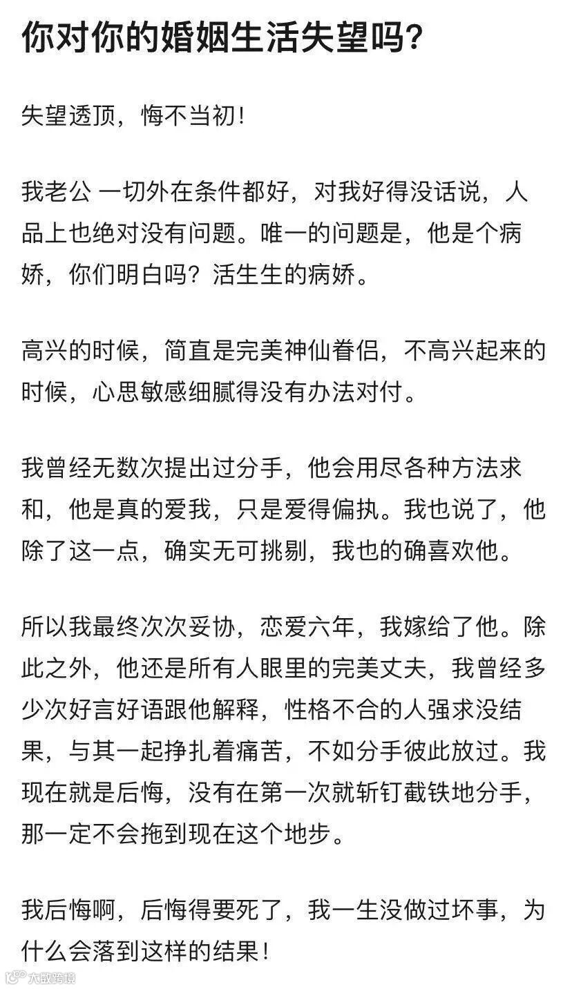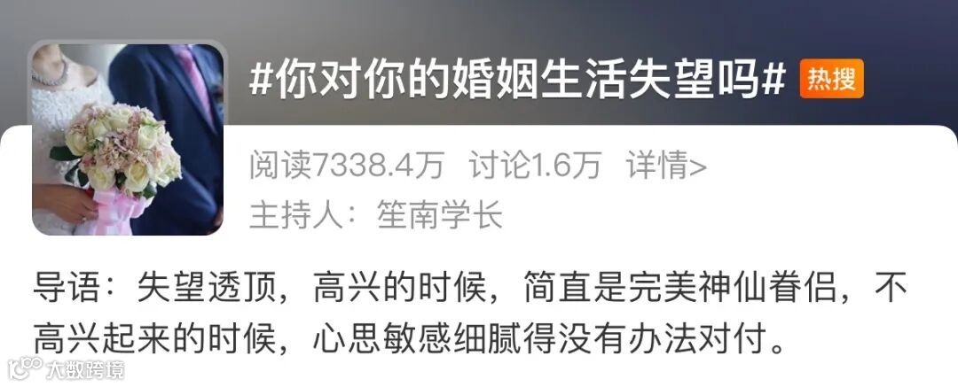 这不,这头#你对你的婚姻生活失望吗#这个话题又登上了热搜。