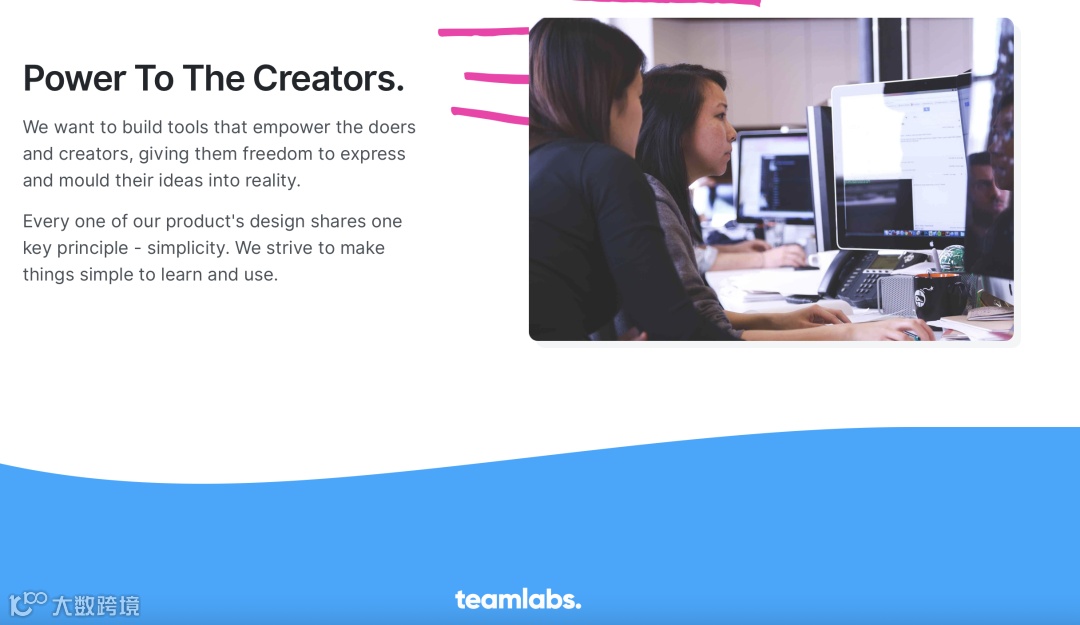 一个快速访问的TeamLabs网站提供一些关于组织和他们工作的信息。