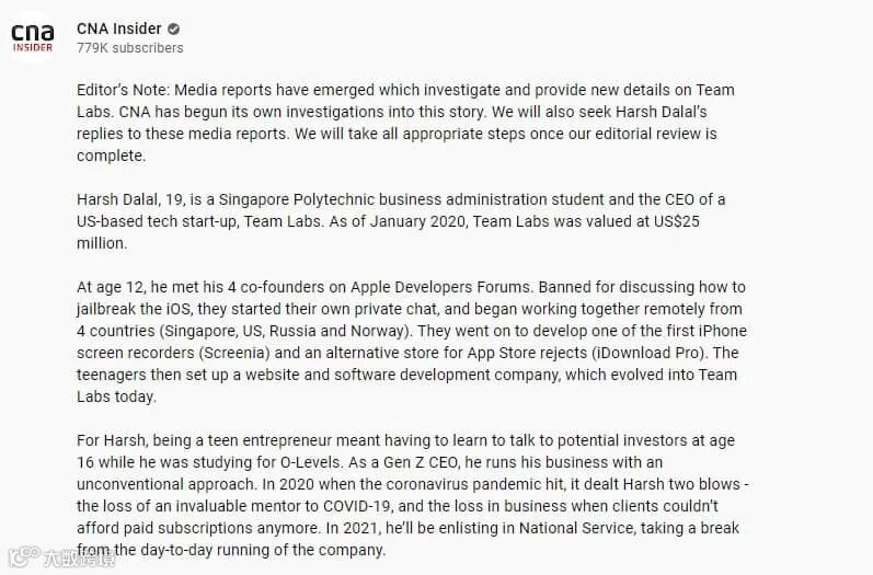 这家科技媒体公司指出了 Team Labs 在资金和投资人方面的一些不一致之处, Harsh 随后在一份声明中告知该媒体, SCV 和 KIC 没有投资这家初创公司。