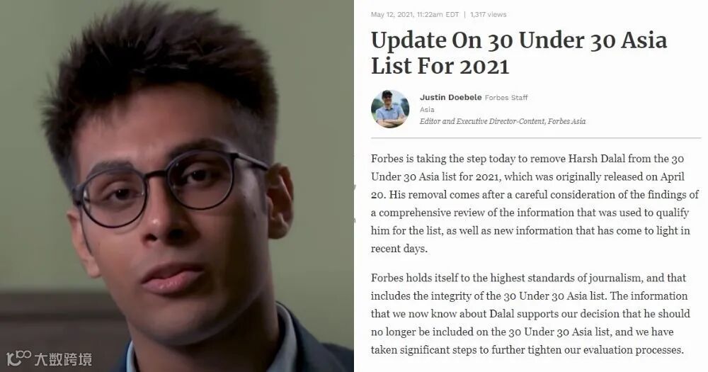 5月12日,福布斯将Harsh Dalal从2021年30岁以下亚洲富豪榜单中除名。