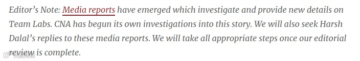 自从最近的调查和报道浮出水面后,中央情报局在一份编者按中说,他们已经开始对 Team Labs 和 Harsh 的故事展开自己的调查。