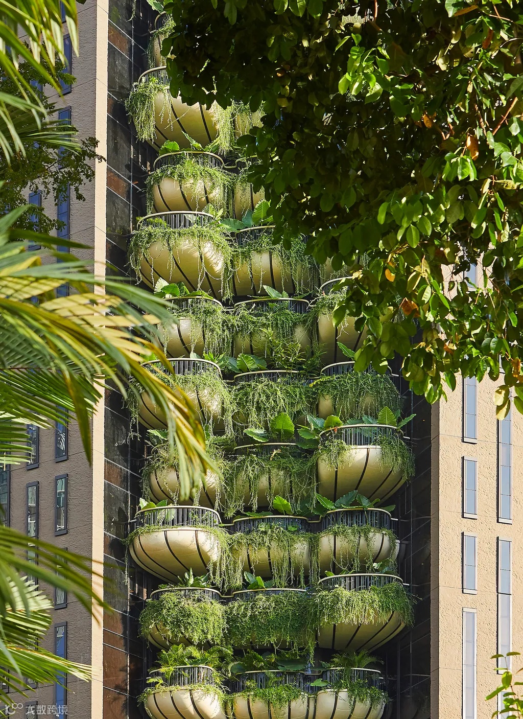 每一个单元都跨越一整层楼,都自带270度定制的 "空中私人花园",长满了热带绿色植物。