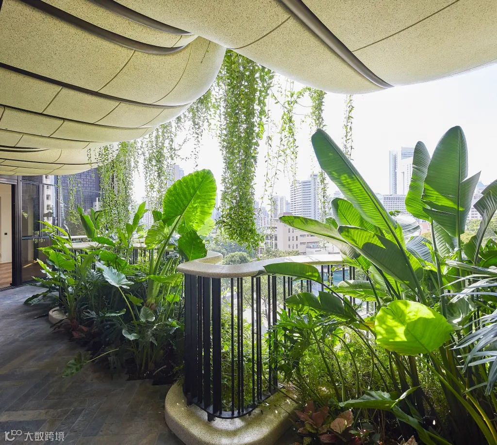 每个公寓的三个有机形状的阳台提供绿色景观和交叉通风。
