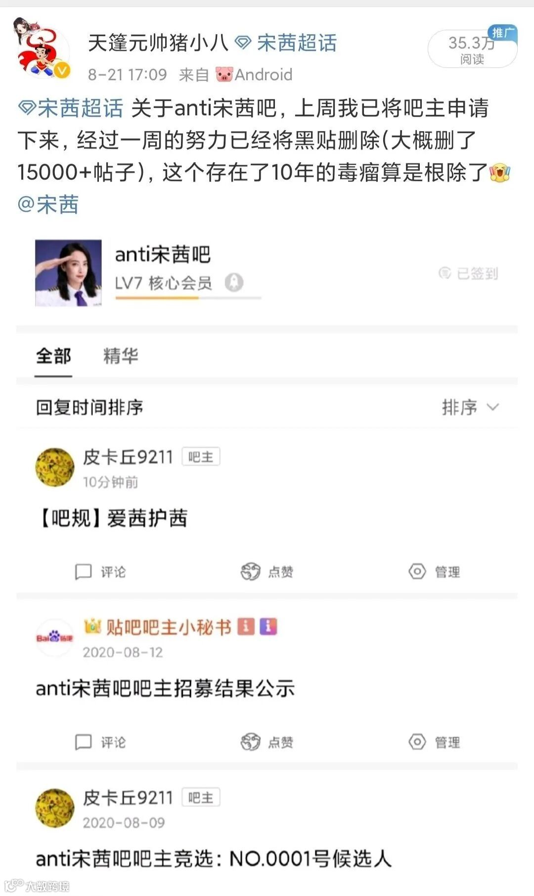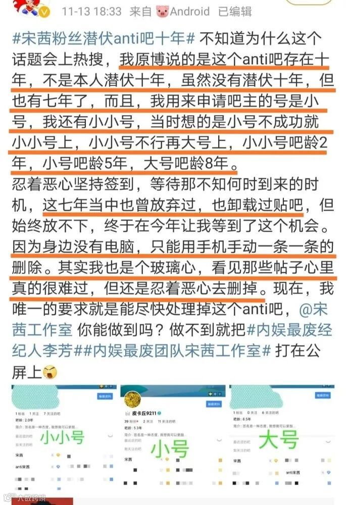 这位饭圈使徒行者本人,潜伏在anti宋茜吧十年,终于成了的该吧的吧主,随后花费了一周时间删除了15000+的黑贴!
