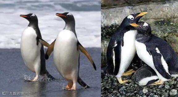 纽约两只雄性帽带企鹅同居六年,并成功孵育一女。后来,一只来自加州的雌性企鹅,成功把其中一只拉回了“异性恋”的道路。无巧不成书的是,洛杉矶也发生了一起和纽约几乎一模一样的“爱情惨案”。