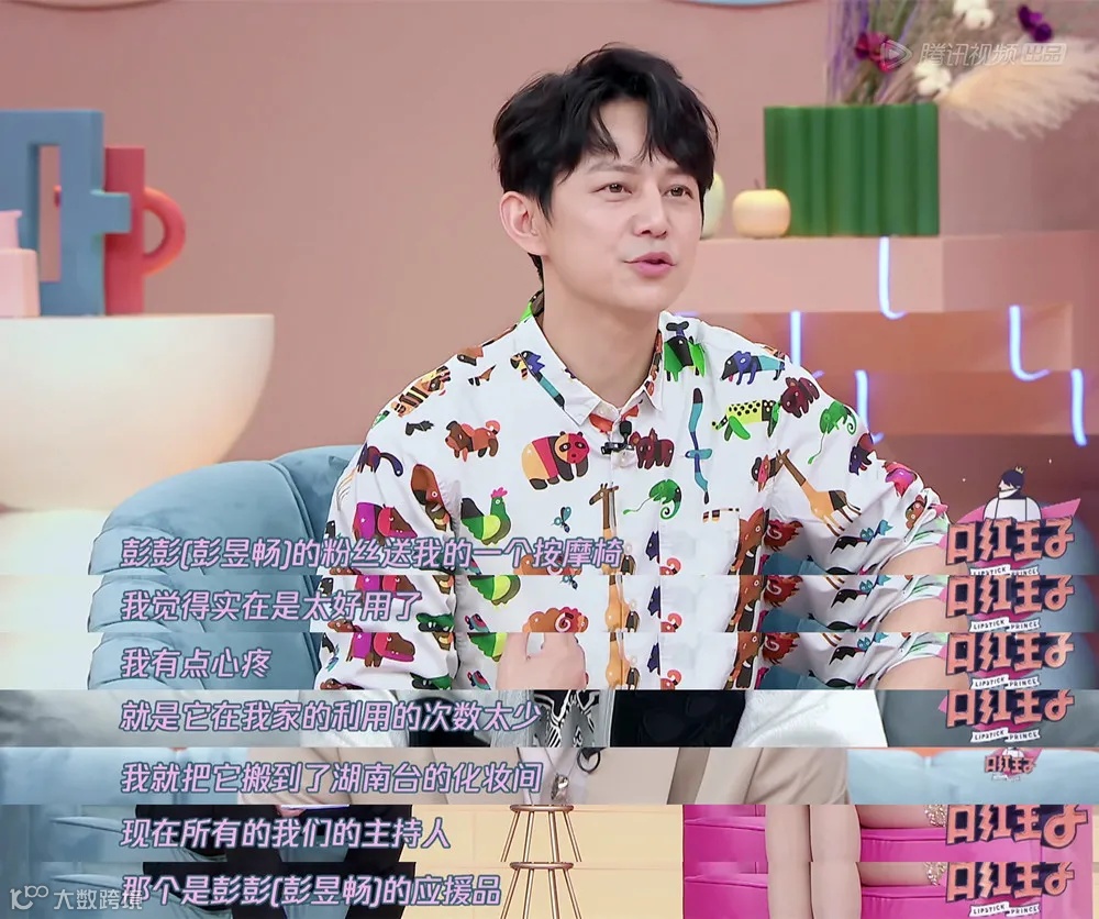 除了吐槽各家粉丝送的保温杯、钢笔太多,何炅还举了一个彭昱畅的粉丝送他按摩椅的例子,说“实在是太好用了”,因为在家利用的次数太少,就搬到了湖南台的化妆间,大家一起用。”