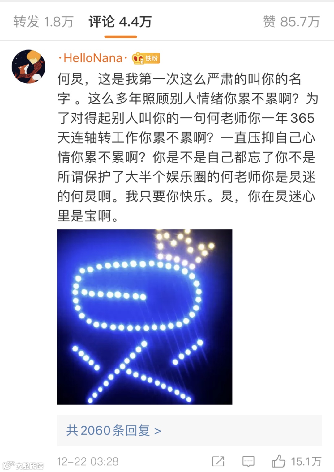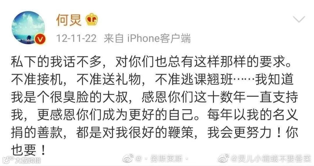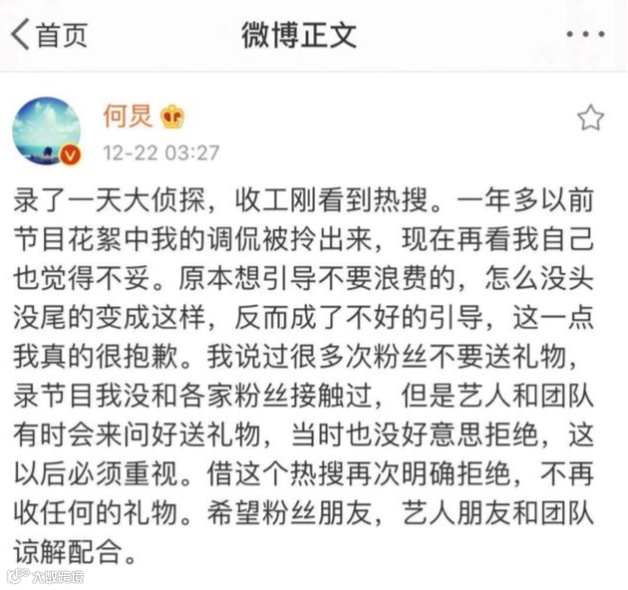12月22日凌晨三点左右,何炅在微博公开回应收“粉丝应援礼”一事。