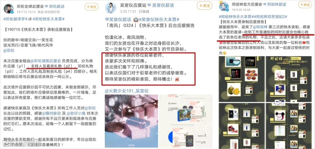 应援文化蔓延到每一档综艺节目,粉丝送赠的礼物也越来越奢华。