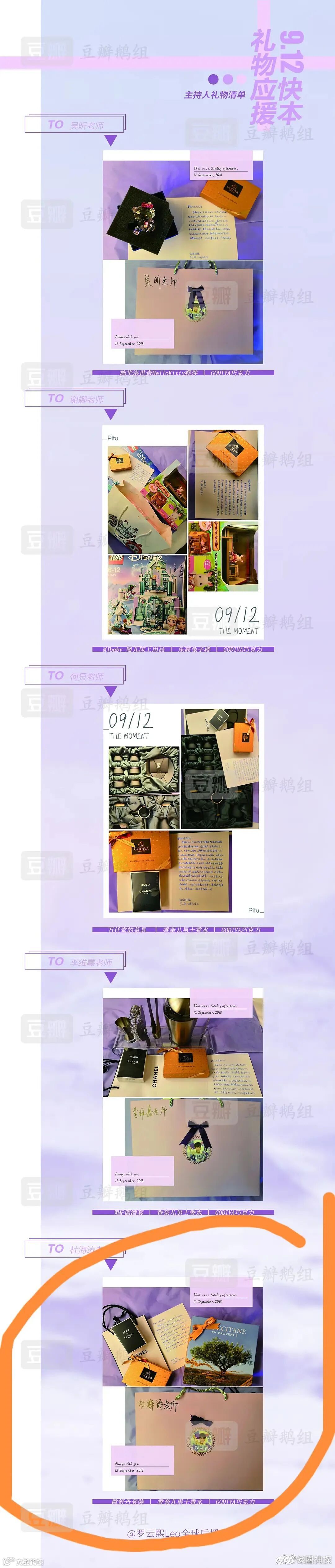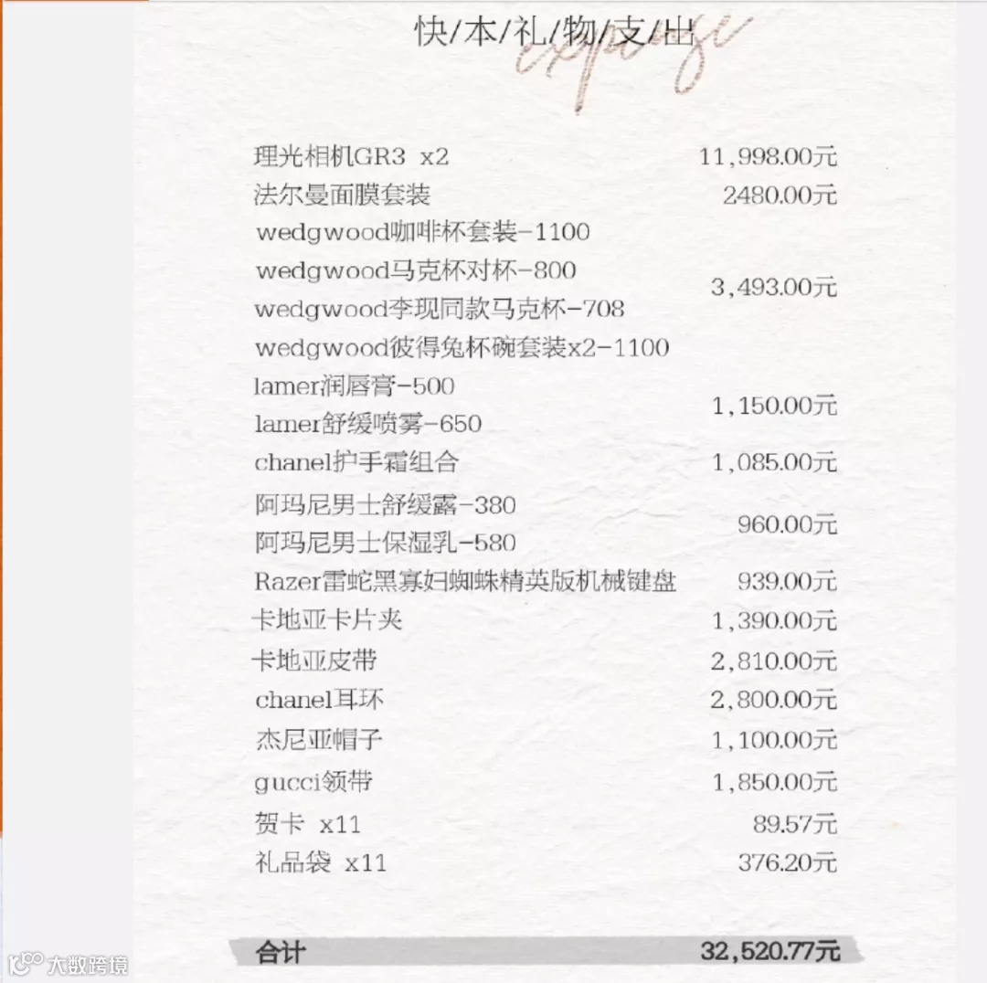 随着事情慢慢发酵,各家送给快乐家族的礼品清单都被晒了出来。