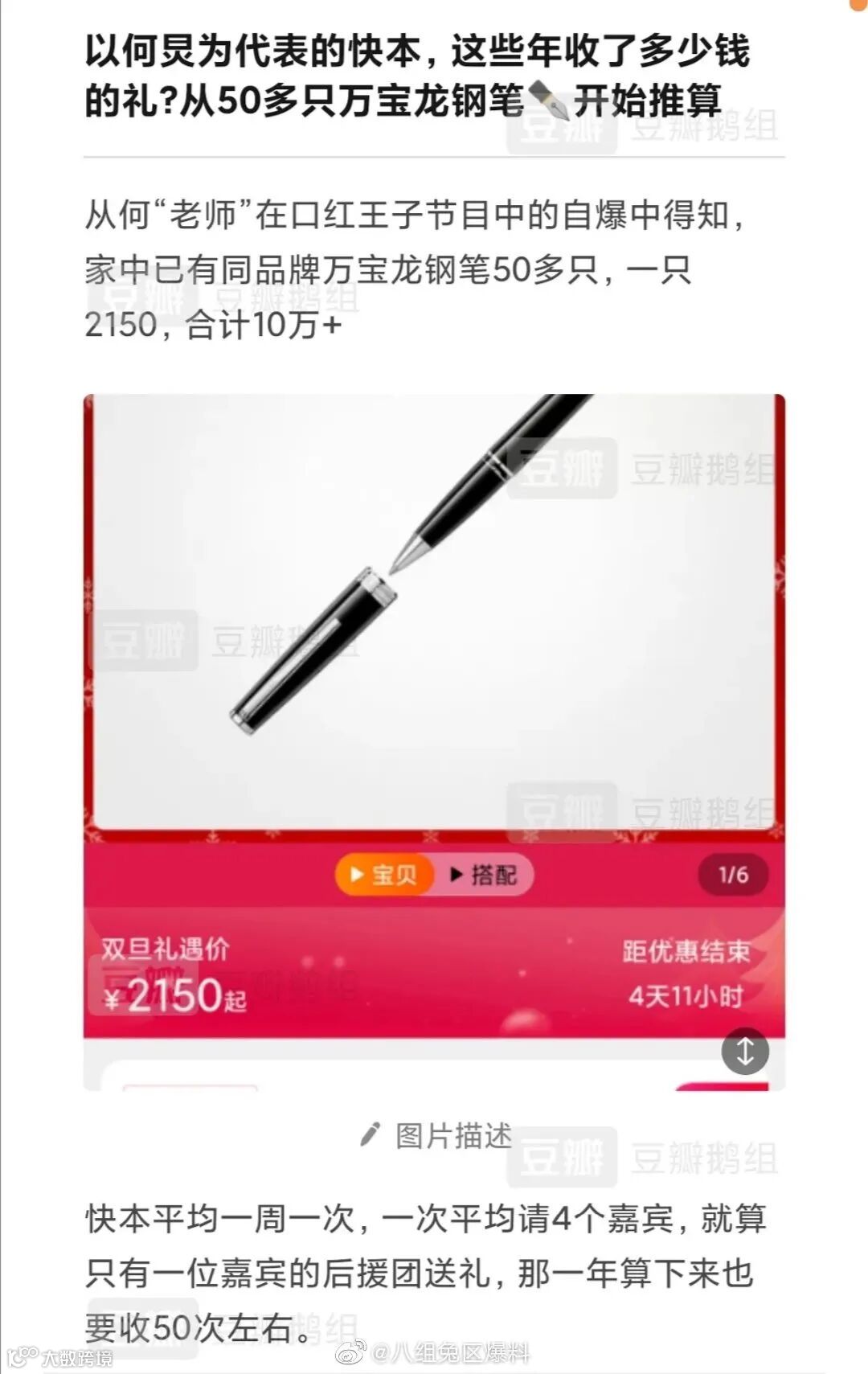 然后被扒了收粉丝金条……