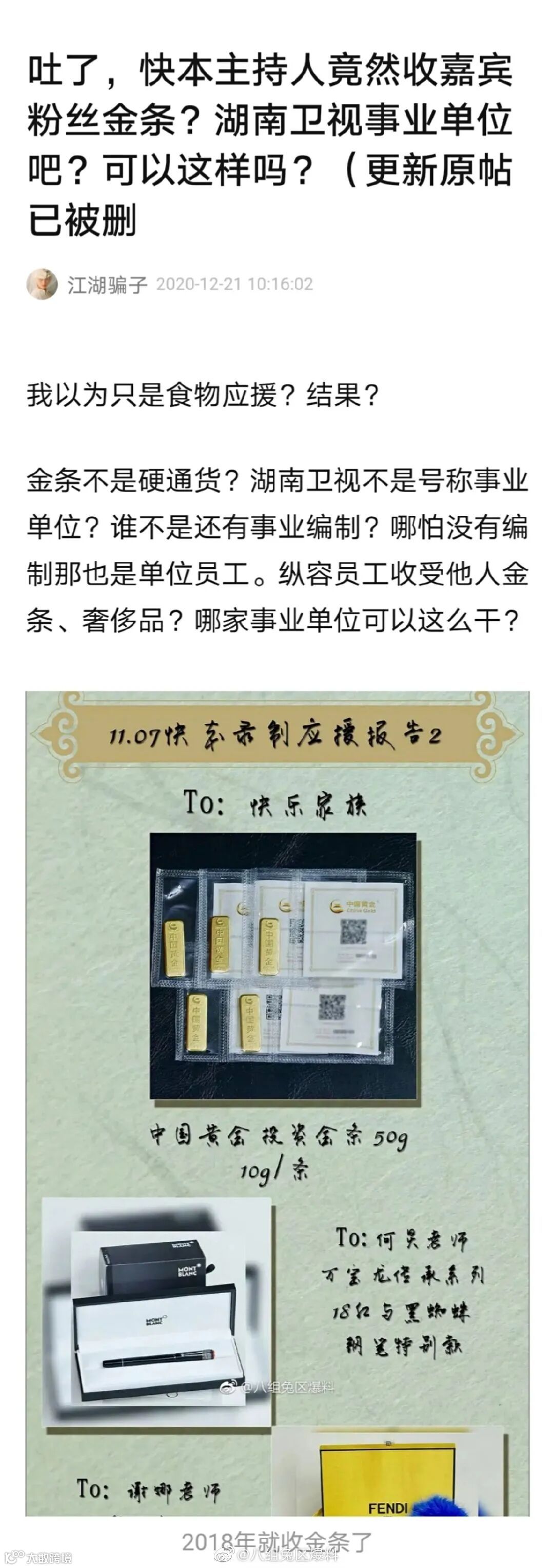 被扒收粉丝金条