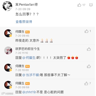 并在评论区回复网友说,赖宝因心脏病于昨夜(19日)去世。