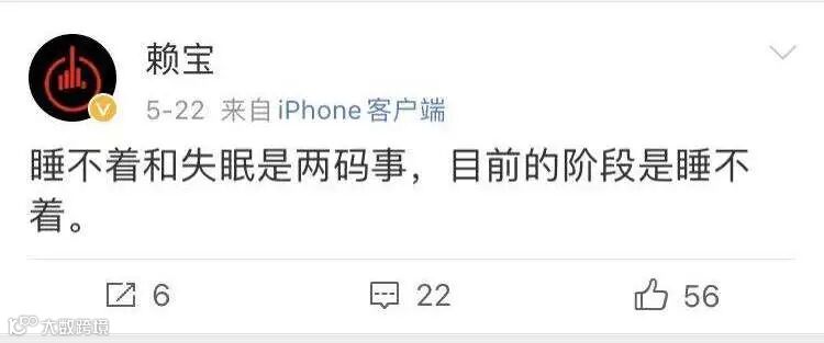 看赖宝的微博,也能看出他经常“睡得少”、“失眠”。