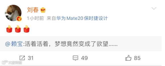 资深媒体人刘春转发了赖宝的最后一条微博:“活着活着,梦想竟然变成了欲望……”