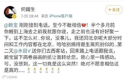 在赖宝去世前几天,本人发微博说;"可能我要死了,拜拜。"