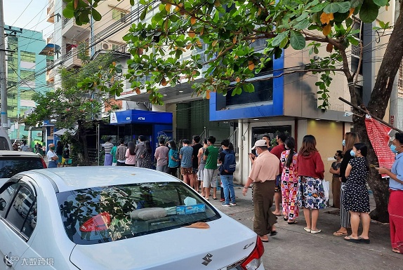 缅甸银行业协会当天早些时候召开紧急会议,认为由于缅甸进入紧急状态后支付系统和通信系统大范围中断,无法支持各银行取款业务。重新开业具体时间待网络恢复后通知。