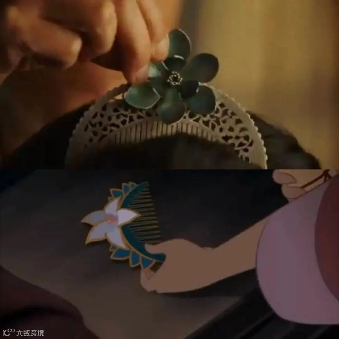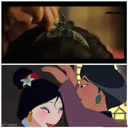 影片中木兰还是女儿身的时候,所带的头饰也完美复制。