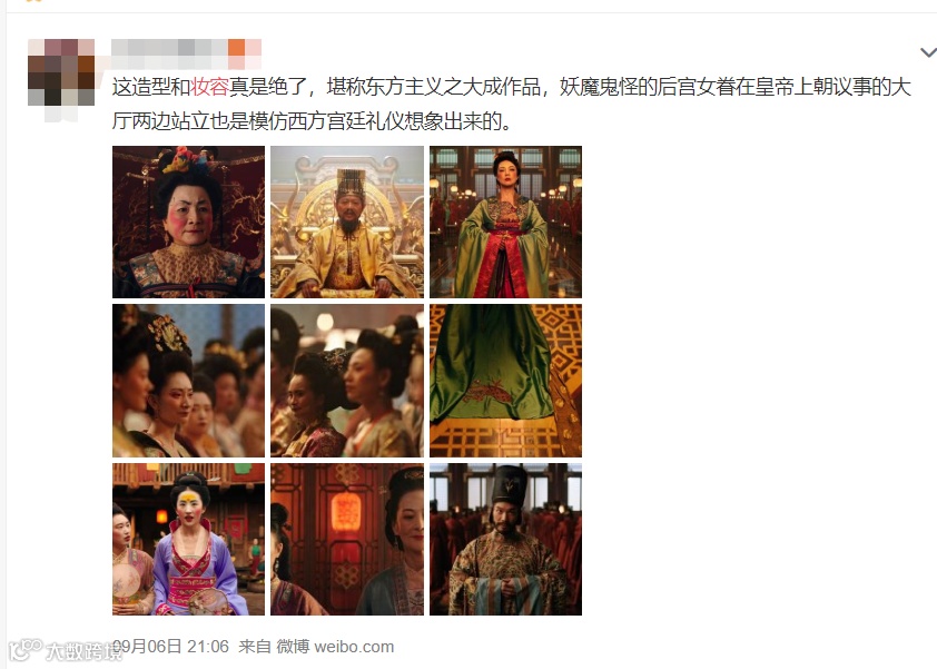 由于妆容太过奇怪,许多网友都吐槽非常难看,还有网友犀利犀利点评“妖魔鬼怪的后宫女眷”。