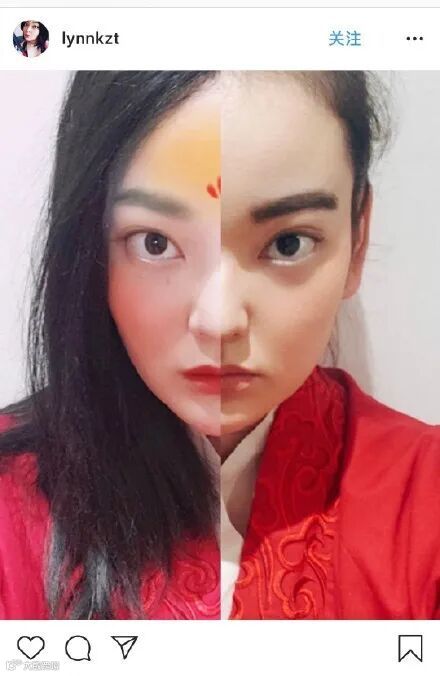 博主emmaleighy模仿花木兰妆容。虽然有些夸张,但也算是模仿到了精髓。