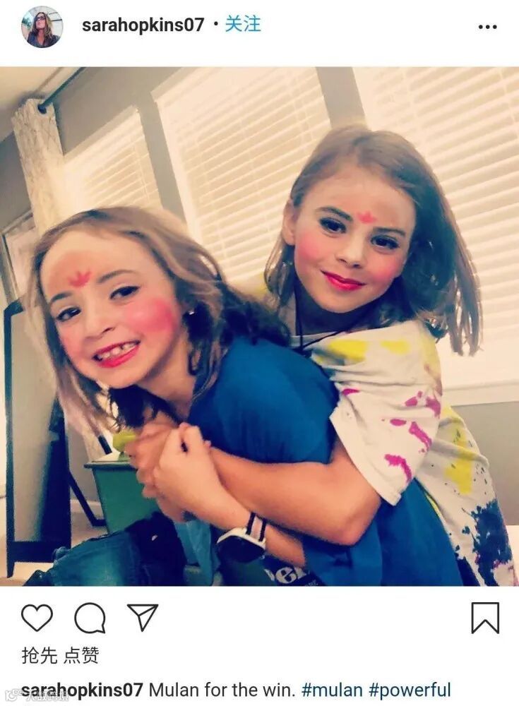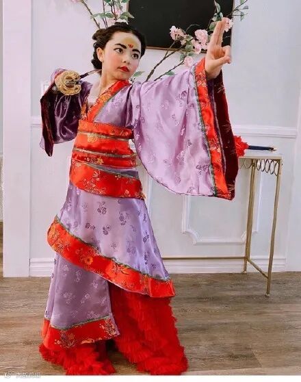 一些外国小朋友也加入到了模仿花木兰妆容的行列中。